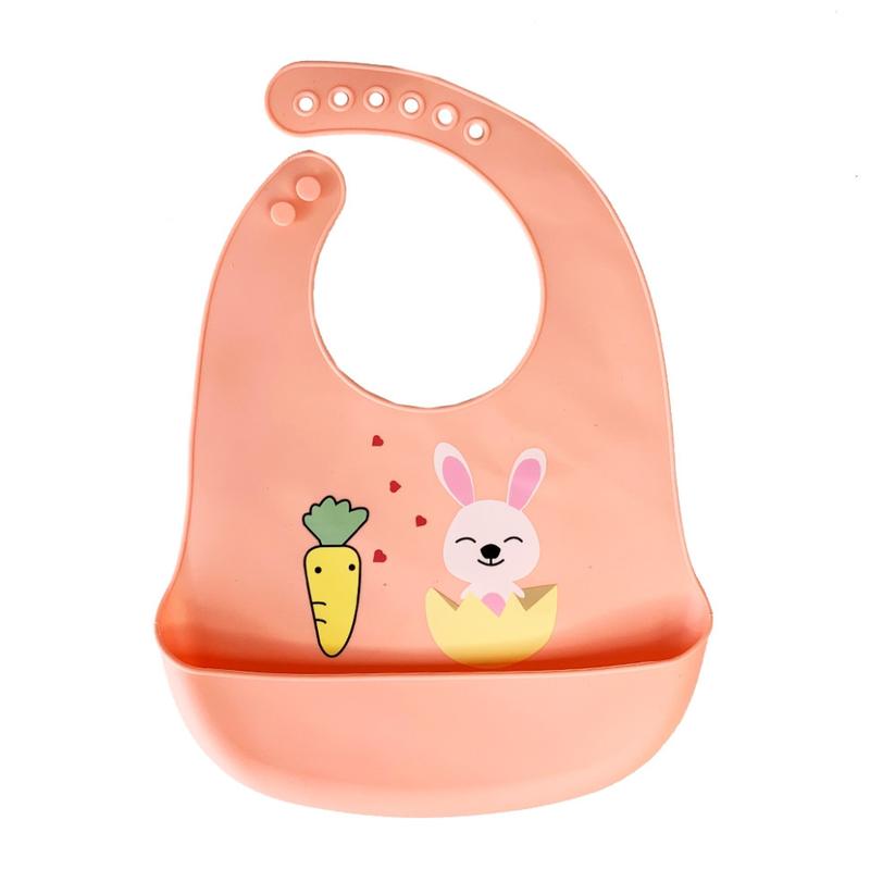 Слюнявчик силиконовый "зайка" mgz-0611(red) с карманом