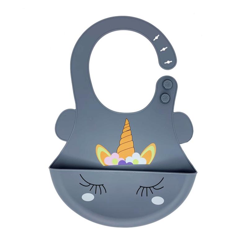 Слинявчик силіконовий "єдиноріг" mgz-0615(grey) з кишенею