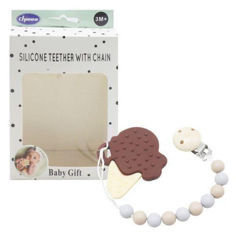 Ланцюжок із прорізувачем. Довжина ланцюжка — 23 см. Виготовлена з якісних і безпечних матеріалів. На ланцюжку є зручний кліпс, за допомогою якого його можна легко повісити на одяг. Прорізувач міцний, гнучкий і абсолютно безпечний для малюка. Допоможе зняти дискомфорт у період прорізування зубів. Розмір прорізувача 8х7 см. Для дітей від 3 місяців. Паковання: Коробка Колір: Різнобарв Вага в упаковці: 75 г Габарити в упаковці: 3.5 x 16 x 10.5 см Страна виробник: Китай Матеріал: Комбінований Комплектація: Ланцюжок із прорізувачем