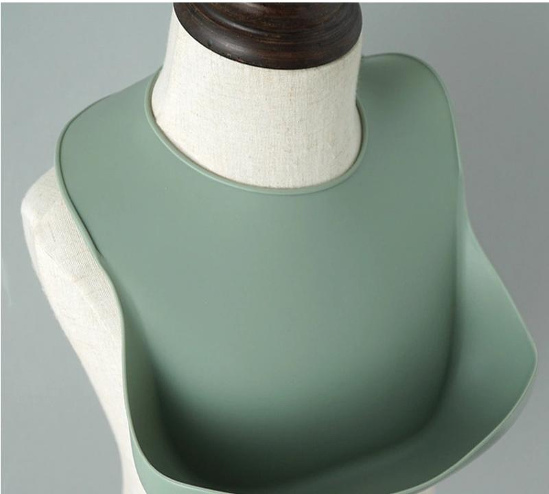 Силиконовый слюнявчик нагрудник для малыша с карманом оливковый