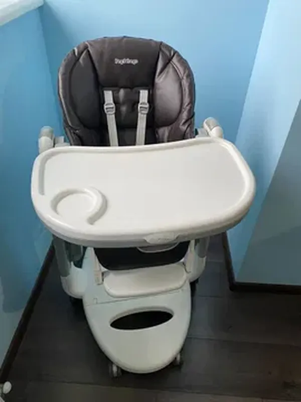 Стілець після ОДНІЄЇ дитини, купували новим в магазині Стілець-гойдалка Peg-Perego Tatamia – адаптується під зростання дитини. А саме: регульована підніжка, для більш старшого віку, по висоті в 3 позиціях. І регульовані по висоті 5-ти точкові, внутрішні ремені. Невід’ємний атрибут будь-якого стільчика для годування – це столик для харчування. Столик даної моделі, складається з знімного підносу для харчування. Який легко знімається і миється. І базовий, знімний стіл-піднос, на якому можна гратися, малювати і т.д. Для безпеки, в нижній частині столика, розташований роздільник для ніжок. Унікальний функціонал «STOP&GO», дає Вам можливість пересувати стільчик, в будь-яку точку житлової площі, без будь-яких проблем. Шість коліс в базі, мають спеціально покриття, які захищає будь-яке підлогове покриття. Вказаний функціонал, блокує випадкове пересування. Тільки при знятті «червоного слайдера» з захисного положення, Ви зможете почати рух. По мірі зростання дитини, Ви зможете посувати стільчик, регулюю потрібну висоту, до звичайного обіднього столу. У складеному вигляді, не дивлячись на свої видимі габарити, він дуже компактний. Вага стільця – 14 кг.