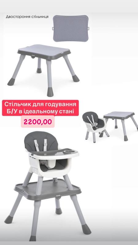 Стільчик для годування поєднує унікальний скандинавський стиль з функціональністю. Завдяки простій конструкції їх можна швидко адаптувати до потреб дитини. Усього кількома рухами (не знімаючи ніжок) він перетворюється з високого стільчика на стильний комплект стілець + стіл. Також є настільна панель для лего.