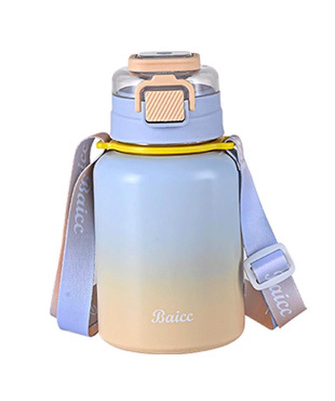 Термос із поїлкою 600 мл з металевою колбою та ремінцем блакитний