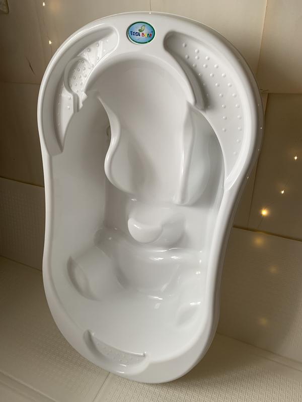 Біла дитяча анатомічна ванночка Зі зливом води Довжина 92 см Матеріал - високоякісний пластик Користувались разів 5, оскільки дитині більше зайшов душ