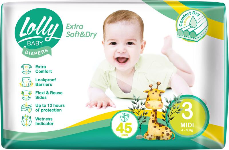Подгузники детские lolly baby extra soft & dry 3 (4-9 кг) 45 шт