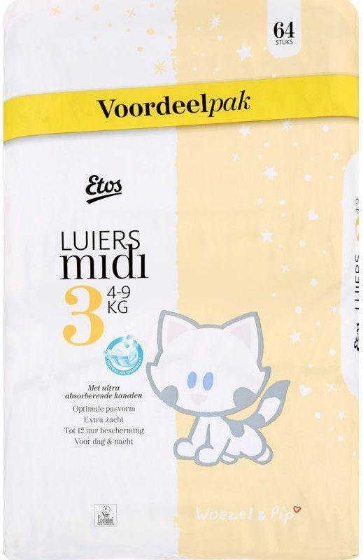 Подгузники etos midi 3 (4-9 кг) 64 шт