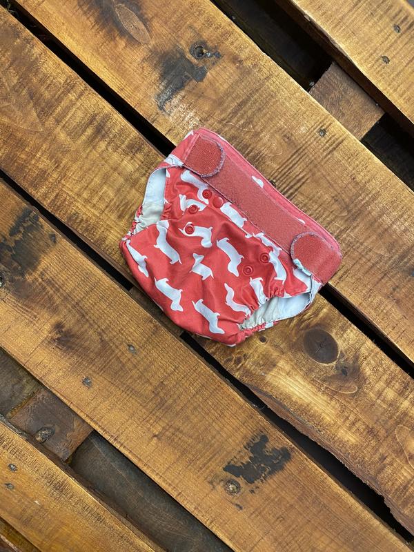 Детский многоразовый подгузник (памперс) с принтом (оригинал onesize красно-белый)