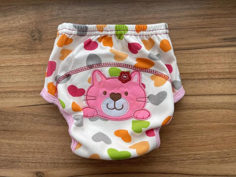 Тренувальні трусики сприяють виробленню навичок знімання — надягання одягу перед туалетом. Дискомфорт стане для дитини головною причиною шукати розв'язання проблеми. Це відчуття корисне, для формування розуміння, чому варто користуватися горщиком. Також Тренувальні трусики не мають бути маленькими, вони мають бути підвищеними за звичайні трусики та трохи вільні на попці, інакше тіло виштовхуватиме вологу назовні. Що б тренувальні трусики менше підводили, потрібно намагатися не одягати на них щільно прилеглої одежини (колготки, висококатні штанці, що сидять, та бодіки) Усі тренувальні трусики вимагають моментального реагування: пописав — переодягали. Підходять для прання та сушіння в пральній машині. Розмір: L/100 на 13–16 кг дитини Матеріал: Матеріал: зовні — бавовна 100% Внутрішня — 85% бавовна, 15% поліестер.
