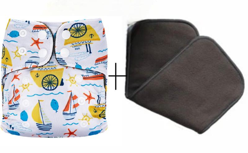 Комплект многоразовый подгузник с бумбовой угольной вставкой + вкладиш бамбуковый угольний