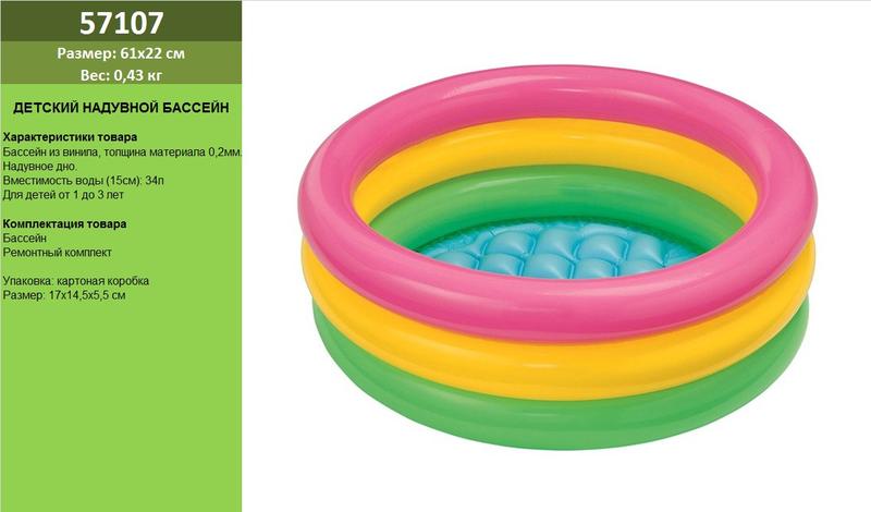 Басейн надувний "райдуга" 3 секц., рем. комплект, (1-3років), 61*22 см. (57107)