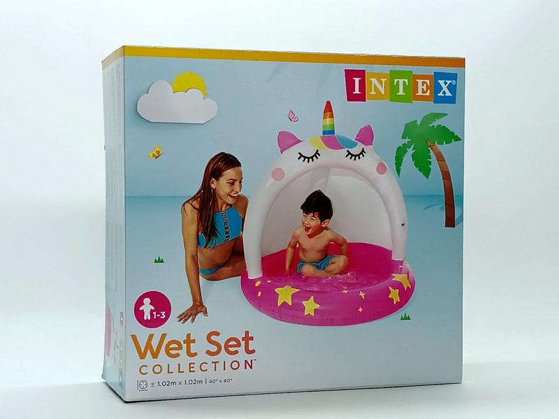 Дитячий надувний басейн intex "єдиноріг" 102×102 см — з козирком, м’яке дно, арт. 58438
