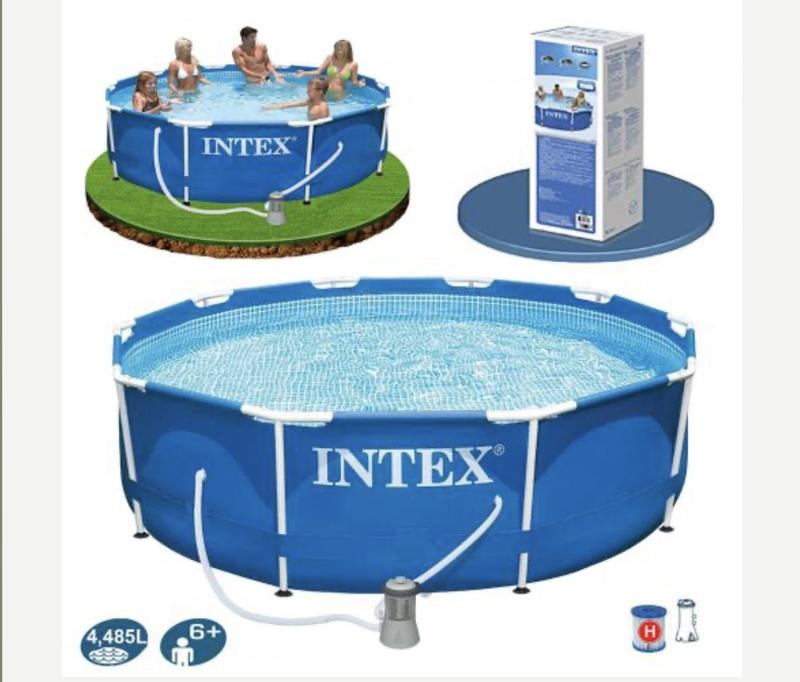 каркасний басейн . Серія Каркас – система фіксації: литий трійник . Каркас – прогони, стійки: прогони та стійки круглої форми . Чаша – матеріал ПВХ: . Стінки басейну: 0.42 мм 3-х шарове ПВХ . Дно басейну: 0.20 мм одношарове ПВХ . – зовнішнє облицювання: класична синя . – внутрішнє облицювання: імітація плитки під мозаїку стаціонарного басейну . – тип підключення: хомути, стандарт 32 мм . – клапан для зливу води: . Вбудований зливальний клапан полегшує злив. . Прикріпити адаптер (додається) до садового шлангу для відведення води в потрібне місце. . Габарити . Розмір заводський: 305 x 76 см . Розмір фактичний (зона для купання): 305 х 68 см . Об'єм басейну: 3 – 5 куб.м . Об `єм: 4 485 л . Форма басейну: кругла . Час монтажу: 30 хвилин