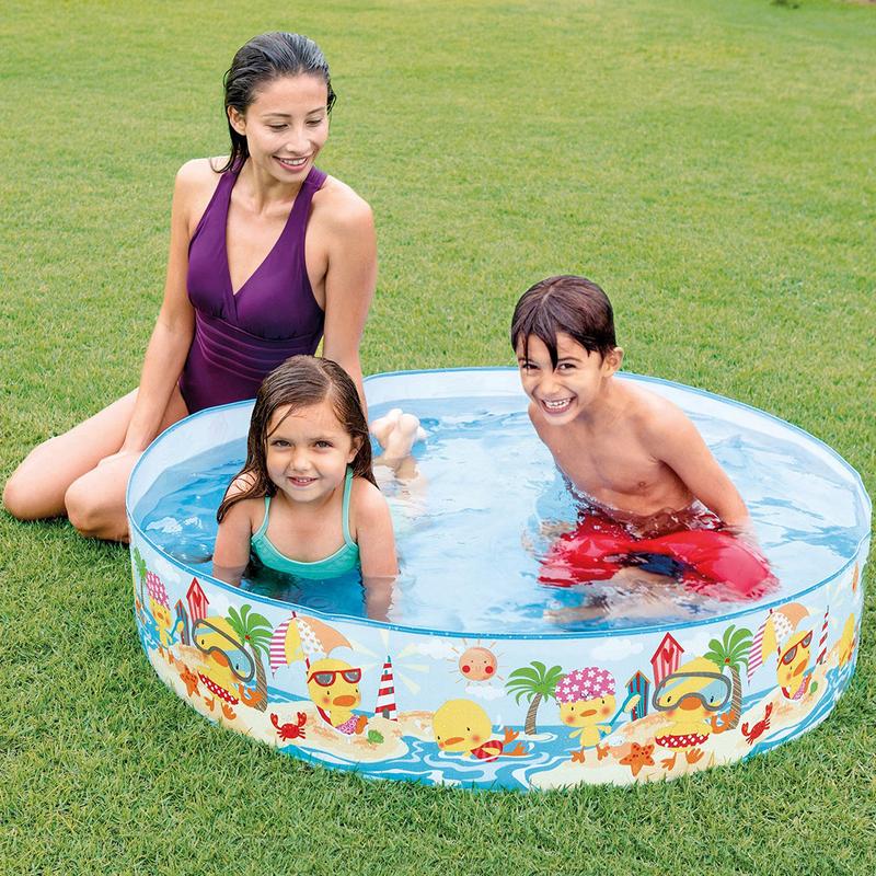 Круглий дитячий басейн intex, міцні стінки, 122 см, з пляжним принтом, літній басейн для м...