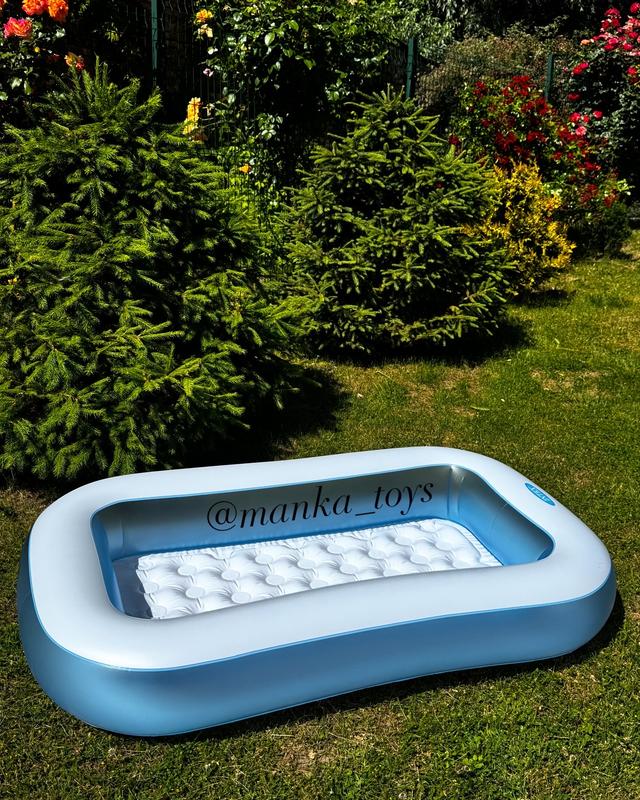 Дитячий надувний басейн Intex 166х100х28 см Басейн - яскравий приклад цікавого, красивого басейну з високоякісного вінілу з надувним дном, місткістю (при заповненні 80%) аж 90 л. Ідеальний варіант для 2-3 дітей від 2 років. Виробником басейну є відома у світі компанія Intex. При необхідності можливо замовити ручний насос, що пришвидшить накачування, але це не є обовязковим. Накачування басейну передбачене силіконовим клапаном.