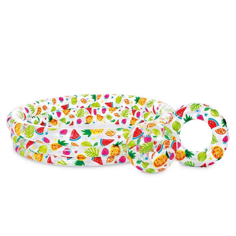 Надувний басейн з принтом 59469-3 Габарити в готовому стані 132см Х 28см. Виготовлений з високоміцного вінілу: бічні частини 0,20 мм, підлогу 0,18. Висота стінок 22см, обсяг заповнення 248л. Зливний клапан. Ремкомплект. Габарити упаковки: 57,0см, 28,0см, 29,5см, 12,3кг, 12шт. в коробці.