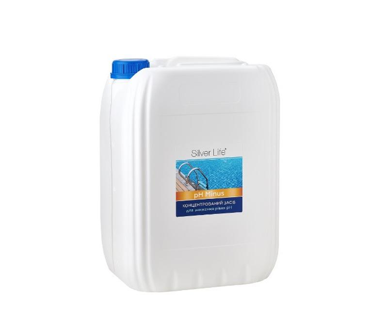 Призначений для зниження кислотно-лужного балансу води і приведення його до оптимальних значень - 7.0-7.4 (рекомендується використовувати препарат, при значенні pH вище 7.4). Рідка консистенція засобу дозволяє використовувати його як для ручного, так і для автоматичного дозування в воду (через насоси дозатори). Нормативний рівень балансу pH підвищує ефективність роботи засобів для стерилізації та коагуляції води, запобігає подальшій появі нальотів і вапняних відкладень на поверхні басейну, виключає можливість появи подразнень і алергічних реакцій у людини. Застосування: для зниження рівня pH на 0,1 необхідно використовувати 100 мл засобу на 10м3 оброблюваної води. Перед введенням в чашу, препарат розводиться в ємності з водою з басейну, до повного розчинення. Після цього, розчин рівномірно виливається по всьому периметру басейну (уникаючи місць поблизу форсунок і скімерів), з подальшим запуском фільтрації. Не рекомендується відвідування басейну протягом ЗО хвилин після застосування засобу! Через 12 годин, після використання засобу, необхідно провести контрольне вимірювання рівня кислотно-лужного балансу. Якщо значення pH залишається за межами рекомендованих, необхідно провести процедуру повторно. Заходи безпеки: зберігати в недоступному для дітей місці. При застосуванні використовувати індивідуальні засоби захисту. Зберігати окремо від продуктів харчування. Рекомендації: Препарат рекомендується використовувати у вечірній час доби.