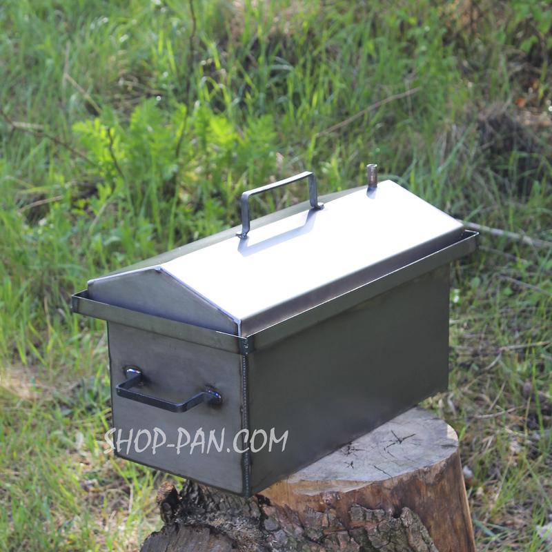 Коптильня Мала з гідрозакривом для гарячого копчення. Виготовлена з холоднокатаної сталі завтовшки 2 мм, двоярусна. Складається з коробки коптильні, піддона для збирання жиру та двох сіток для укладання продуктів. Габаритні розміри: довжина 350 мм. ширина 255 мм. висота 270 мм. Розміри коптильної камери: довжина 300 мм. ширина 200 мм. висота 220 мм. Розове завантаження продуктів — 3-4 кг. Вага коптильні — 7 кг. За допомогою біметалевого термометра для копчення Ви повністю регулюватимете процес копчення, що мінімізує можливість помилки. Термометр – 240 грн. Тріска в асортименті Спеціально підготовлена очищена тріска для копчення в асортименті з листяних і фруктових порід дерев. Тріска з вільхи підходить для копчення риби, м'яса, птиці, сала, сиру, по суті — універсальна. Букова та дубова — для копчення м'ясо ковбасних виробів, сала, реберців або сиру. Суміш з вільхової та букової тріски використовують під час копчення м'яса, птиці, сала, реберців. Тріска з черешні буде ідеальна для копчення птиці, кролика, сала, сухофруктів і горіхів. З яблуні — для копчення сала, баликів, а також овочів, фруктів і морепродуктів. Асортимент тріски: 50грн./кг. - вільха (фасування по 1 кг); - бук (фасування по 1 кг); - дуб (фасування по 1 кг); - мікс (50% вільха/50% бук; фасування по 1 кг); 100грн./кг. - яблуня (фасування по 0,5 кг); - черешня (фасовка по 0,5 кг)