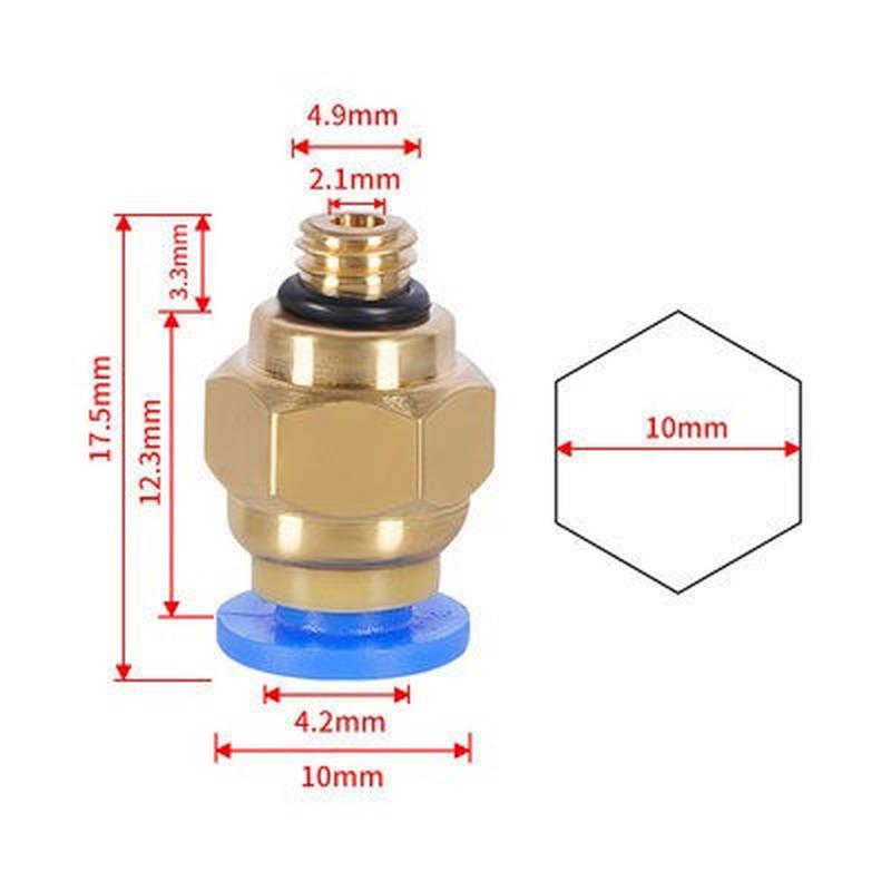 Дивіться весь асортимент у нас на сайті — Фітинг PC4-M5 для PTFE трубки, Латунь Фітинг PC4-M5 для тефлонової трубки — це спеціальне кріплення, яке застосовується в системах Bowden для фіксації PTFE-трубки для подачі філаменту. Монтується в 3D-принтер за допомогою різьбового кріплення та гарантує надійну фіксацію тефлонової трубки. ХАРАКТЕРИСТИКИ: Розмір різьблення: M5 Внутрішній діаметр: 4 мм (діаметр вхідної трубки)