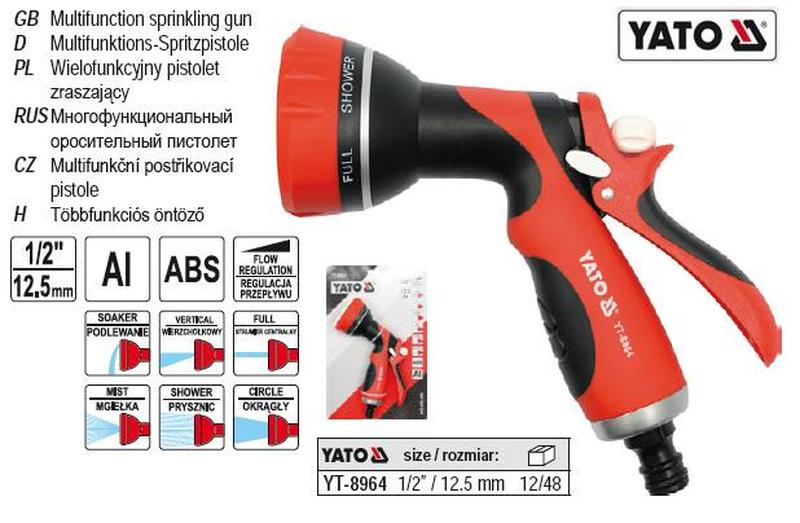 Пистолет поливочний yato пістолет зрощувач 6 режимів ø=1/2" yt-8964