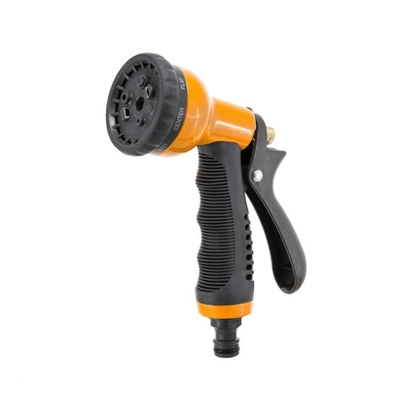 Особливості Пістолет для поливу Presto-PS (7204) використовується для ручного поливу газонів середньої та невеликої площі, городів, квітників, прибирання доріжок на прибудинковій території, миття садового інвентарю та техніки. Поворотна головка пістолета має 8 положень і регулює форму струменя і ступінь розпилення води. Можливі режими роботи: м'який струмінь, дрібні струмені, кутовий, проливний дощ, душ, туман, плоский горизонтальний, конус. Підключається до садових шлангів діаметром 1/2, 5/8 і 3/4 дюйма за допомогою стандартних конекторів. Рекомендований робочий тиск у системі від 2 до 4 атмосфер. Виготовлений поливальний пістолет з металу, довговічний, стійкий до механічних пошкоджень, впливу ультрафіолету і водорозчинних добрив. Переваги - Зручність і простота підключення; - Універсальність використання - 8 режимів подачі води; - Металевий корпус стійкий до пошкоджень; - Зміна режиму роботи простим поворотом головки; - Фіксація курка для тривалого поливу; - Ергономічна прогумована рукоятка; - Дозволяє вносити водорозчинні добрива; - Надійна, обслуговувана конструкція. Коротка інструкція з підключення зрошувального пістолета: 1. Підключити гнучкий садовий шланг через кран до джерела водопостачання; 2. За допомогою конектора з аквастопом підключити шланг до пістолета; 3. Подати воду; 4. Вибрати необхідний режим роботи.