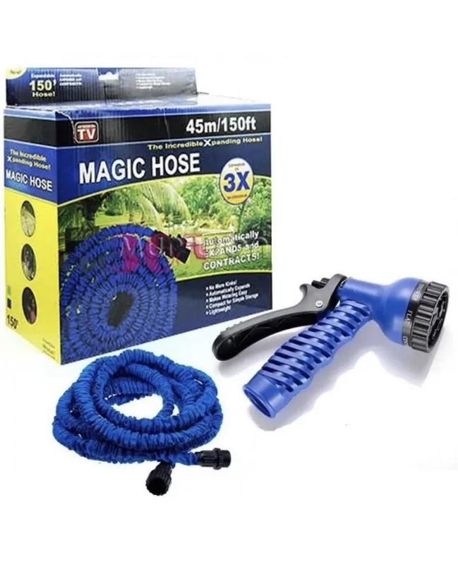 Садовый шланг X-Hose 45 метров для полива сада с распылителем Синий OM227 Садовий шланг для поливу X HOSE 45 м з розпилювачем Диво-шланг для поливу! Рекомендуємо ― Шланг поливальний садовий Xhose 45 м. Диво - шланг ИксХоз (Magic hose) абсолютно відрізняється від всіх шлангів які Ви коли-небудь бачили раніше! Його довжина змінюється! Варто включити воду – і він розширюється. Поливальний шланг Ікс Госп (Magic hose) автоматично збільшується в довжину – якщо потрібно, він стане довшим у 3 рази, а потім знову легко і просто стиснеться для зручності зберігання. Це легкий, компактний, еластичний шланг-гармошка з практичним дизайном, що виключає утворення петель і заломів. Завдяки своїй здатності розтягуватися в довжину і великому діаметру городній шланг Ікс Госп створює потужне, інтенсивне розпорошення, яке ідеально підходить для миття вікон, чищення машин, поливу квітів і багато чого іншого. Досвідчені садівники і дачники вибирають шланг: розтягується при надходженні води – стає в 3 рази довше! Він автоматично повертається в початковий розмір ― за лічені секунди! Не перекручується, не заламується, не плутається Міцний і зносостійкий, ефективно працює в парі з підсилювачем напору. Дуже легкий, компактний, зручно зберігати. В комплекті до шлангу йде супер насадка. Розпилювальна насадка ― це просте у використанні пристрій, в якому зручно поєднуються одразу 8 різних функцій! Насадка призначена для задоволення будь-яких потреб в поливі! Мийте машину або поливайте сад будь-яким з 8 різних режимів – за власним вибором: Душ Повна струмінь Злива Конус Плоский струмінь Центральна струмінь Аерозоль Шланг Ікс Госп(Magic hose) підходить: Для миття вікон або фасаду будинку, поливу газонів, Для миття машини чи автофургона, Для догляду за рослинами в саду, Для поливу розсади і квітів, Для гаража і дачного ділянки, Незамінний в ландшафтному дизайні! Необхідний у сільському господарстві! Характеристики: Матеріал шланга: ткане полотно поліефірне, латекс Діаметр вихідного отвору 25 мм, тиск 0,9 Бар Матеріал арматури: АБС-пластик Макс. довжина 150 футів (45 метрів) В комплекті: шланг, доп насадка