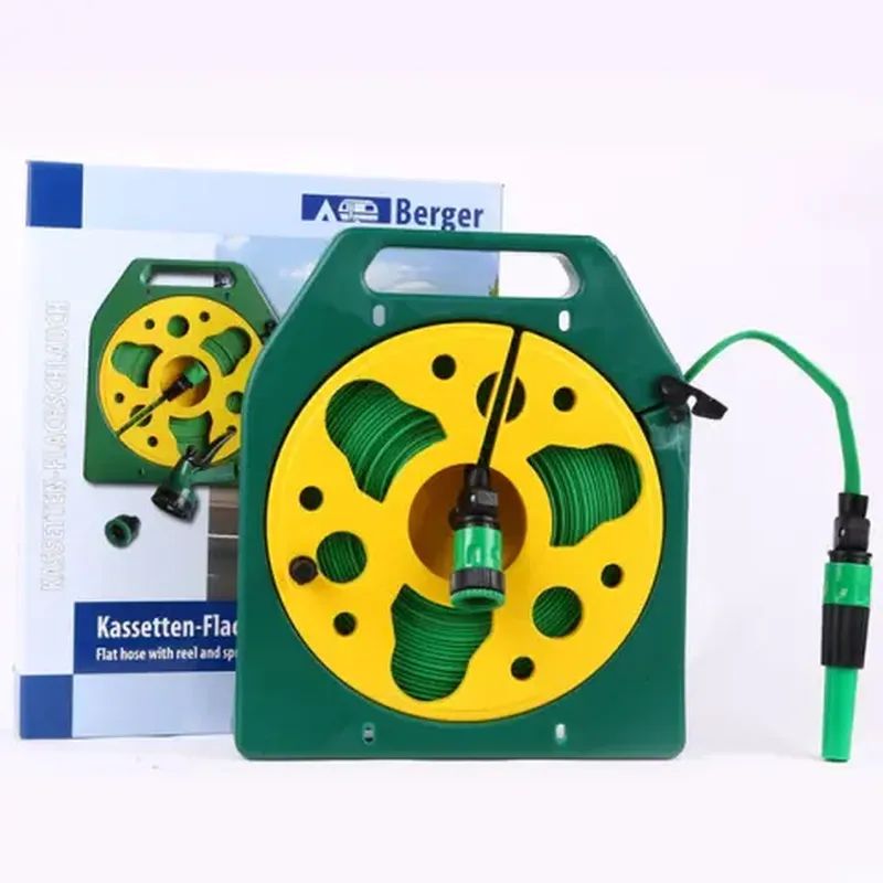 Шланг 20м садовий пвх на котушці в комплекті з пістолетом-розпилювачем на 4 режими Шланг поливальний 20 м з котушкою та розпилювачем – це зручний інструмент, що поєднує компактність та практичність. Його плоска конструкція запобігає перегинам, скручуванням та сплутуванню, забезпечуючи рівномірний потік води. У комплект входить міцна котушка з ручкою для зручного змотування та зберігання, а також пістолет-розпилювач із 4 режимами роботи, що дозволяє адаптувати пристрій під різні завдання. Шланг ідеально підходить для догляду за садом, поливу рослин, миття автомобілів, очищення вікон, терас та інших поверхонь. Переваги: Компактне зберігання та економія простору: завдяки вбудованій котушці шланг легко змотується та зберігається без зайвого місця, що особливо актуально для невеликих ділянок чи терас. Багатофункціональний пістолет-розпилювач: 4 режими забезпечують універсальне використання – від делікатного поливу рослин до інтенсивного миття. Міцна конструкція: шланг виготовлений з двошарового ПВХ, стійкого до протікання та розривів. Додатковий зовнішній тканинний шар забезпечує захист від пошкоджень та довговічність. Зручність експлуатації: легка котушка оснащена ручкою для змотування шланга легко. Ручка для перенесення дозволяє легко переміщувати комплект. Різноманітність застосування: підходить для поливу квітів, дерев, догляду за газоном, миття автомобілів, очищення терас, під'їзних шляхів, огорож та інших поверхонь. Стійкість до протікання: надійні кранові фітинги запобігають витоку води, а підключення до крана виконується швидко та легко. Характеристики: Тип товару: Шланг поливальний Довжина шлангу: 20 метрів Тип шланга: для поливу, плоский Матеріал шлангу: полівінілхлорид (ПВХ) Матеріал котушки: міцний ABS пластик Кількість режимів розпилювача: 4 Матеріал розпилювача: ударостійкий пластик. Додаткові особливості: вбудована ручка для перенесення та змотування шланга Колір: Зелений