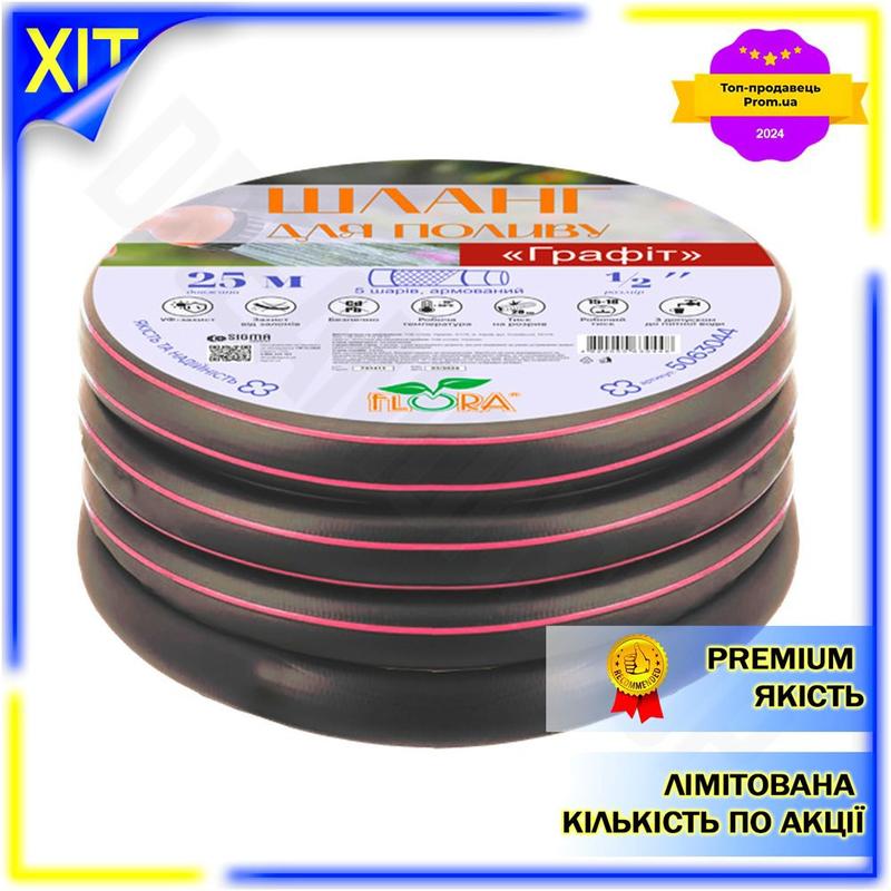 Dm шланг для поливу специфікація 2.2 графіт 5 шарів армований ¾ 50м flora для саду та горо...