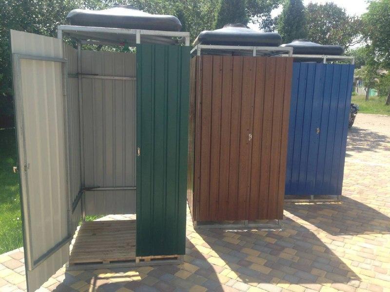 Каркас душа полностью из стали Размеры душа: Ширина 1000 х 1000 мм. Высота 2000 мм. Обшит оцинкованным металлом "профнастил", под любой цвет(по выбору заказчика). Цены: Трапик - 500 грн Душ 1800 мм - 7000 грн (без бака) Душ 1800 мм - 8400 грн (с баком 100 литров) Душ 1800 мм - 8800 грн (с баком 140 литров)