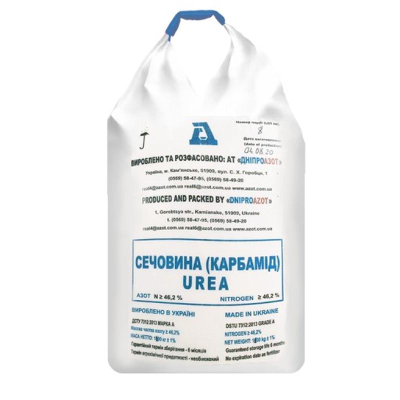 Ціна вказана за 1т Фасування: Біг-бег по 700 кг Продаж: роздріб: від 1 біг-бегу опт: від 20т Важливо! Ціна на товар може змінюватись, перед замовленням уточніть у менеджерів. Країна виробник: Україна Карбамід містить 46.2% азоту, і є найбільш концентрованим азотним добривом. Добриво випускається у двох марках А і Б. Марка А призначена для промислового використання, марка Б – для сільського господарства. Речовина добре розчиняється у воді і при зберіганні не злежується. Застосовується для всіх видів грунтів як основне і передпосівне добриво, а так само в якості підгодівлі.
