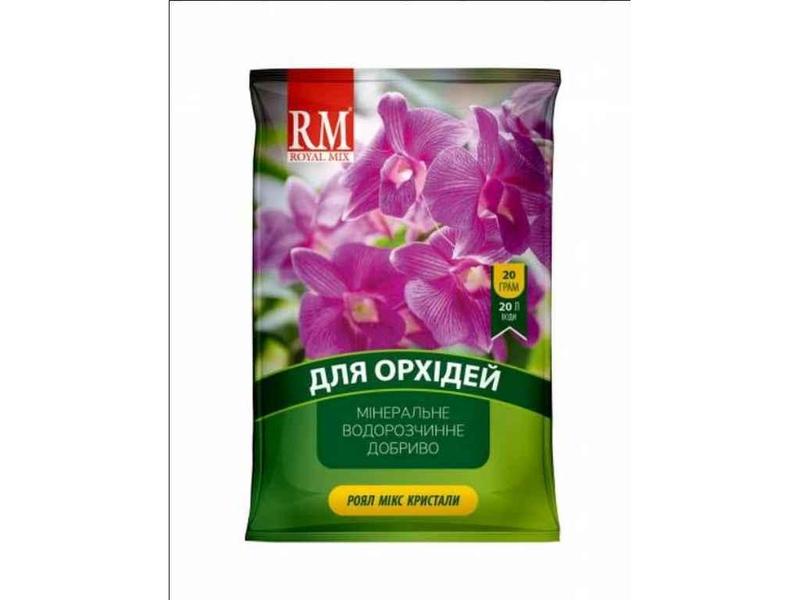 Кристалічне добриво Royal Mix для орхідей – багатокомпонентне добриво забезпечує правильний ріст і розвиток рослин, зміцнення імунної системи, підвищення стійкості до несприятливих умов при догляді, запобігає виснаженню під час тривалого періоду цвітіння, покращує насиченість кольорів. На нашому сайті є можливість купити добриво для орхідей за найкращою ціною та з безкоштовною доставікою. Добриво допомагає швидко компенсувати дефіцит поживних елементів, відновити листковий тургор, особливо при пошкодженій кореневій системі. НОРМИ І СПОСІБ ВНЕСЕННЯ: Проводять підживлення від початку їх активної вегетації, 1 раз на 2 тижні, почергово коренево та позакоренево, і до настання періоду спокою (завершення цвітіння). Підживлювати тільки добре зволожені рослини. Для кореневого живлення занурити горщик у розчин добрив на 15-20 хвилин, для позакореневого обприскати рослини, крім бутонів і квітів. На нашому сайті є можливість купити ПРИГОТУВАННЯ РОБОЧОГО РОЗЧИНУ: для кореневого підживлення 1г добрива (1 мірна ложка) розчинити в 1 літрі відстояної або питної води кімнатної температури. Для позакореневого підживлення 2г добрива (2 мірні ложки) розчинити в 1 літрі води. При прояві дефіциту елементів живлення концентрацію розчину збільшити у 1,5 рази. СКЛАД: N-13%, P2O5-5%, K2O-26%, B-0.025% Fe-0.07%, Zn-0.01%, Cu-0.005%. Мірна ложка в комплекті!