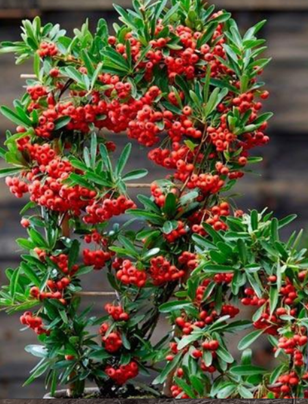 Швидкорослий вічнозелений чагарник з довгастим блискучим темно-зеленим шкірястим листям і довгими шипами. Хороша у будь-яку пору року. Навесні гілки покриваються запашними кремовими квітками, а восени - гронами блискучих яскраво оранжевих ягід. Плоди зберігаються усю зиму. Особливо ефектно виглядають під снігом. Піраканта є не тільки чудовою прикрасою садової ділянки, а й завдяки шипам, його своєрідним захисником. З часом, живопліт з піраканти стає густим і практично непродувним, оберігаючи ділянку від вітру, шуму і непроханих гостей. Пираканта - самий приголомшливий і улюблений багатьма садівниками всього світу.Це вічнозелене напівчагарник, який також відноситься до деревовидних ліан. Пираканта незамінна в багатьох садах, так як дуже легко стрижеться і формує різні Топіарії. Також дуже красиво виглядають живоплоти, які виростають дуже щільними.Піроканти цінується не тільки своєю красою ягід, але і рясним казковим ароматним цвітінням, триває цвітіння в травні місяці 3 тижні. після чого утворюючи зелені ягоди і до серпня місяця перетворюються в помаранчевий. червоний, бежевий колір.Ягоди тримаются досить довго з серпня по лютий місяць, чим приваблює багато птахів у ваш сад. і цей потрасающій чагарник буде вам в радість взимку своєї яскравим забарвленням.Зимостійкість у піраканти висока до - 40. Хворобами не підаеться. Форміровку і стрижку проводять ранньою весною в кінці лютого - початок березня.Посадку можна проводити протягом всього посадкового сезону. свернуть