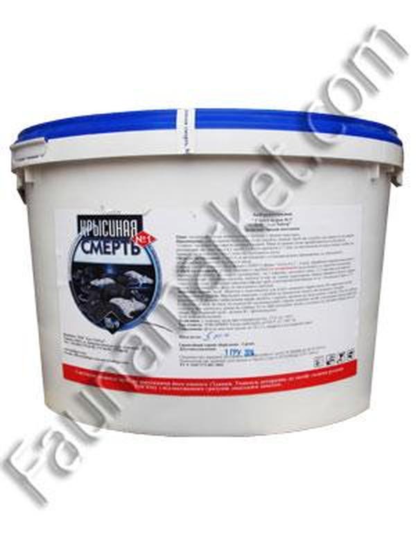 Засіб для знищення сірих і чорних пацюків, ховрахів, полівок, а також будинкових мишей в житлових, нежитлових і промислових приміщеннях, сільськогосподарських угіддях та полях.Смерть щурам №1 200 гр - засіб для знищення сірих і чорних пацюків, ховрахів, полівок, а також будинкових мишей в житлових, нежитлових і промислових приміщеннях, сільськогосподарських угіддях та полях. Завдяки унікальній технології змішування інгредієнтів виходить однорідний за складом та зовнішнім виглядом ароматизований, тістоподібний продукт. Діюча речовина: бродіфакум - 0,005% Переваги: - Принада складається з натуральних інгредієнтів: борошно, соняшникова олія, цукор, спеціальні ароматизатори, тому гризуни воліють приманку звичної їжі. - Гризунів залучають особливі речовини, що знаходяться в складі, вони гинуть, не викликаючи жодних підозр у родичів. - Засіб викликає загибель мишей і щурів протягом 4-8 діб. - Через задуху гризуни виходять з укриттів і гинуть не в норах, під підлогою, а за межами приміщення, на відкритому місці. - Безпечно для людини, домашніх і с/г тварин, а також птахів та бджіл. Застосування: Приманку слід розкласти під укриттям у спеціальних або пристосованих для цього ємностях з картону, поліетилену або жерсті. Не торкатися до приманки голими руками, щоб не відлякувати гризунів людським запахом, можна з допомогою пінцета. У місцях заселення гризунів, поблизу нір, на шляху пересування, уздовж стін. Норма витрати для мишей: 1 пакет, для щурів: 2-3 пакетики. Закладати з проміжком через 2-15м, в залежності від виду та чисельності гризунів. Протягом 7-10 днів здійснювати контроль за поїданням кошти і там, де вона з'їдена, обов'язково заповнювати до початкового об'єму. Припинити розкладання кошти тоді, коли вона залишається недоторканою гризунами. Гризуни починають гинути через 3-4 дні. Остаточний ефект настає через 6-10 днів. Залишки засобу легко прибирається після застосування і не вимагає спеціальної утилізації, досить закопати або спалити їх.