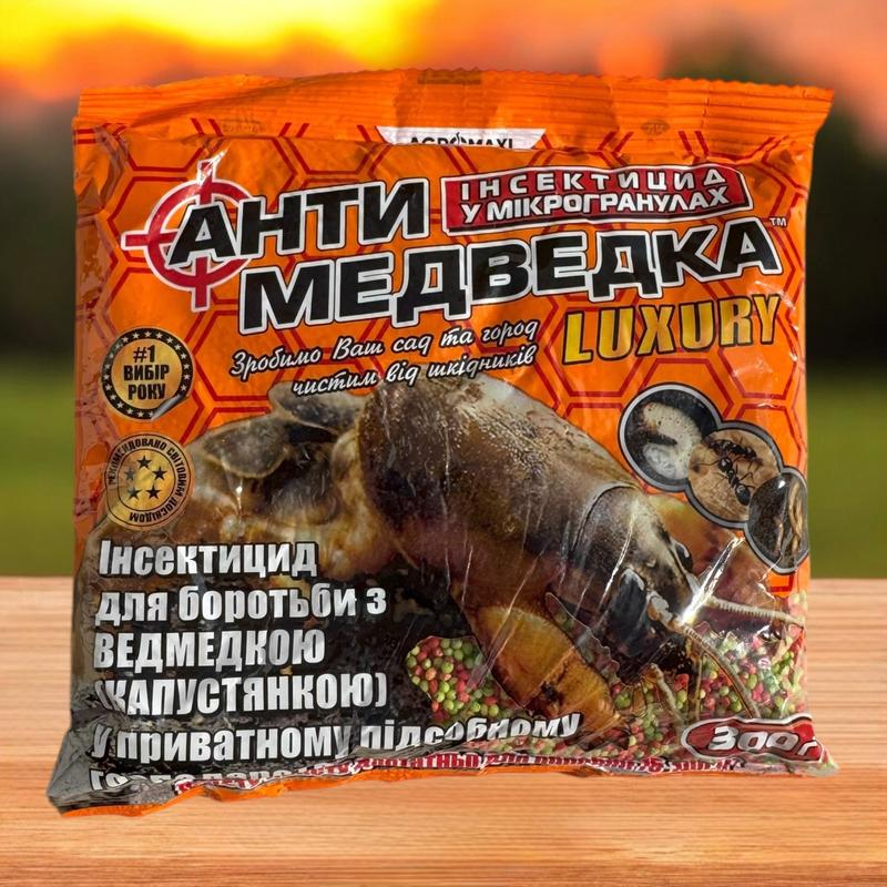 Інсектицид «Антимедведка» микрогранула (пшоно) Дуже відоме і якісне засіб від великого спектру ґрунтових шкідників (капустянка, хрущ та їх личинки, дротянка тощо), яке використовується для захисту різних культур, розсади та насіннєвого матеріалу від знищення цими комахами. До складу препарату входять: добірні гранули (пшоно), діюча речовина на основі імідаклоприду 50 г/кг, спеціальні добавки і принади. Для досягнення максимального ефективного результату слід дотримуватися наступних рекомендацій, а саме: - Антимедведку пшоно слід розкладати в засобах захисту, щоб уникнути прямого контакту з препаратом. - Обробку пшоном треба робити як в міжряддя, а так само безпосередньо у виявлених норах або ходах шкідників. - Закладку робити на глибину 3-5 см з порціями по 3-4 грами і інтервалом між ними в 0,5-0,7 метра і злегка присипати і ущільнити землею. Так само засіб можна використовувати для боротьби з садовими мурахами. Для цього необхідно насипати антимедведку в місцях скупчення і пересування комах. Так само можна насипати і безпосередньо на мурашник. Для цього акуратно зняти 2-3 см верхнього шару мурашника і насипати 4-5 грам приманки, після цього присипати назад землею.