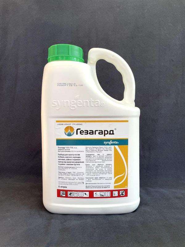 Гербіцид виборчої дії Гезагард, 5 л Syngenta Опис гербіциду Гезагард: Вплив на бур'яни, які вже зійшли, відбувається через листя. Максимальний ефект досягається при довсходовому обприскуванні посівів, на яких бур'яни утворили до трьох листків. Поглинання гербіциду відбувається у фазі проростання бур'янів, що викликає їх загибель ще до появи сходів. Не рекомендується проводити прополювання, розпушування у міжряддях після внесення гербіциду - це зменшить гербіцидну дію. Тривалість захисної дії - 35-45 днів залежно від погодних умов Препарат відноситься до малотоксичним (ЛД50 >2000 мг/кг) Нетоксичний для бджіл, навколишнього середовища та корисної ентомофауни Можна змішувати з іншими загальновживаними гербіцидами на відповідних культурах. Характеристики: Гербіцид Гезагард Діюча речовина: 500 г/л прометрину Класифікація ВООЗ: III клас (помірковано токсичний) Максимальна кратність обробок: 1 Норма витрати робочого розчину: 250-350 л/га Термін очікування після обприскування - без обмежень. Застосування гербіциду Гезагард: Відміряти потрібну кількість препарату та розвести в 5 або 10 л води залежно від засміченості та площі вирощування Найкращий ефект досягається при застосуванні до 5 л робочого розчину на 1 сотку Обприскування проводять свіжоприготовленим розчином у безвітряну погоду на ретельно підготовленому ґрунті. Час обприскування: картопля - обприскування ґрунту після посадки або після нагортання гребенів до появи сходів культури; морква - обприскування ґрунту до посіву, до сходів або у фазі 2-4-х справжніх листків культури; горох, соняшник - обприскування після посіву до появи сходів культури.