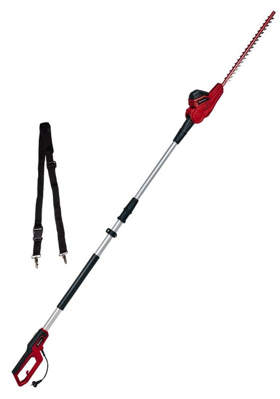 Кусторез телескопический Einhell GC-HH 5056 (3403870) характеристики: Мощность 500 Вт Длина шины 560 мм Длина реза 470 мм Скорость реза 3000 мин-1 Расстояние между зубами кустореза 20 мм Телескопическая ручка 1700 – 2500 мм Вес инструмента 4,3 кг Вес брутто 5,3 кг Кусторез телескопический Einhell GC-HH 5056 (3403870) особенности: Режущая насадка с возможностью наклона для лучших результатов стрижки Лазерная заточка и алмазная шлифовка ножей Большое расстояние между зубьями для резки более толстых ветвей Телескопический удлинитель Основная вращающаяся ручка Металлический редуктор для длительного срока службы Мягкая ручка для удобного использования Крепкий кожух для хранения и транспортировки Регулируемый ремень для транспортировки с механизмом быстрого снятия Гарантия 36 месяцев Для электрического кустореза Einhell GC-HH 5056 мощностью 500 Вт высокие живые изгороди не вызывают трудностей. С ним высокие живые изгороди можно безопасно срезать от земли – без нужды в шаткой лестнице. Телескопический кусторез имеет длину от 170 см. Разработанный как раздельный вал, входящий в комплект удлинитель можно присоединить к ручке, и довести общую длину устройства до 2,5 м. Благодаря длине лезвия 56 см и длине стрижки 47 см можно точно формировать и живые изгороди. Благодаря большому расстоянию между зубцами 20 мм, даже более толстые ветки не являются проблемой. Для длительного срока службы кусторез оснащен прочным металлическим редуктором. Для оптимальной работы под разными углами режущую насадку можно наклонять в 5 положениях. Заднюю ручку можно поворачивать для вертикальных и горизонтальных разрезов