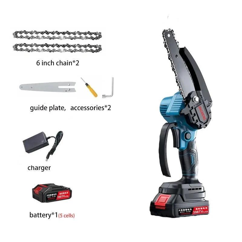 Мініпила акумуляторна ланцюгова для обрізання дерев і розпилювання дров на акумуляторі Універсальна акумуляторна пилка чудово підходить для обрізання дерев і чагарників, для рубання та подрібнення садових відходів, а також у процесі будівництва з дерева. Гілкоріз має нековзну ручку керування для ідеальної ергономіки. Гнучка кришка ланцюга для безпечної роботи. Мініпила має високу швидкість різання. Для обрізання круглих гілок діаметром від 15 см потрібно приблизно 10 секунд. Пила може розв'язати проблему повільного обрізання гілок, неабияк підвищити ефективність роботи та заощадити ваш дорогоцінний час. Невелика вага сприяє тривалій роботі без втоми, будь то дорослий чоловік чи жінка. Бездротова конструкція робить пилу зручнішою під час роботи на відкритому повітрі. У мініпилі використовується високоякісний напрямний ланцюг, який був глибоко оброблений, щоб зробити різ плавним і рівномірним. Акумуляторна пила має легку вагу та зручно розміщується в руці. Акумуляторна ланцюгова пила обладнується електродвигуном з обвиткою з чистої міді, що має велику потужність і підвищену ефективність. Практична, швидкісна, з низьким енергоспоживанням і плавною зміною швидкості акумуляторна ланцюгова мініпилка стане Вашим незамінним помічником на присадибній ділянці та на дачі! Особливості: - Швидка швидкість різання; - Легка та зручна; - Високоякісний напрямний ланцюг; - Простота у використанні. Характеристики: - Тип: Ланцюгові пили; - Призначення: Для різання; - Акумулятор: Li-ION батарея; - Матеріал: АБС-пластик, неіржавка сталь; - Матеріал руків'я: АБС пластик; - Комплектація - Акумуляторна ланцюгова пила; - Акумулятор - 1шт; - Ланцюг на шину -- 2 шт.; - Зарядний пристрій для акумуляторів; - Ключ; - Викрутка;