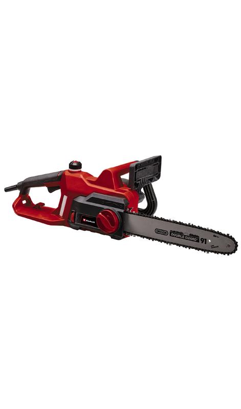 Високоякісний ланцюг і шина OREGON Заміна і натяжіння ланцюга без інструментів Металевий редуктор Ергономічна ручка Міцні металеві кігті зупинки Автоматичне змащування ланцюга Захист віддачі з механічним миттєвим гальмом ланцюга Великий наливний отвір масляного баку Уловлювач ланцюга Електрична ланцюгова пила Einhell GC-EC 1935 є зручним, ефективним інструментом і практичним помічником для розпилювання дров, проріджування кущів і вирубки невеликих дерев. Двигун потужністю 1900 Вт, якісні шина довжиною 350 мм і ланцюг OREGON забезпечують хорошу продуктивність різання. Ланцюг може бути натягнутий і змінений без використання інструментів. Для оптимальної передачі потужності і тривалого терміну служби, пила GC-EC 1935 має високоякісний, міцний металевий редуктор. Захист від віддачі з миттєвим механічним гальмом ланцюга забезпечує високу безпеку при експлуатації. Ця ланцюгова пила поставляється з автоматичною системою змащення ланцюга, а масляний бак має великий отвір, що дозволяє легко заливати мастило. Велике оглядові вікно дозволяє легко перевірити, скільки масла масляного баку автоматичної системи змащення ланцюга. Для забезпечення безпеки в разі зістрибання ланцюга з шини пила має уловлювач ланцюга. Надійні кігті зупинки забезпечують безпечну роботу з вирубки та різання на задану довжину, а також можуть бути використані в якості точки опори. Кабельний затискач для кріплення кабелю дозволяє зняти натяжіння та захищає кабель живлення.