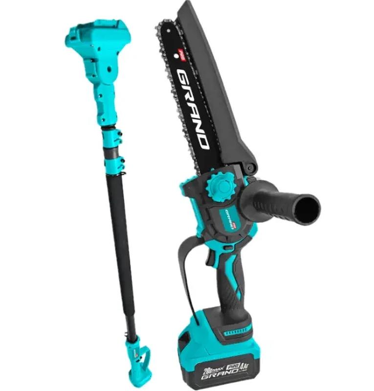 Аккумуляторная пила цепная grand апц-20v/m8" -4 с телескопической штангой 2 акб + зу