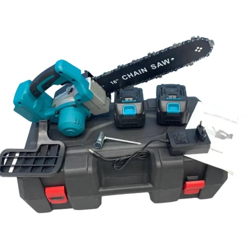 Цепная аккумуляторная пила 16" с двумя аккумуляторами 21v electric синий цепная пила в чем...