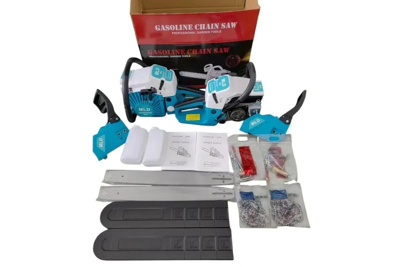 Бензопила MLD AT-GS2004 (2,4 кВт) Основні характеристики Потужність: 2,4кВт Робочий об'єм двигуна: 52куб.см Частота обертання: холостий/робочий - ≈3300/11000об/хв Довжина шини: 18″ (приблизно 45см) Крок ланцюга: 0,325″ Об'єм паливного бака: 550мл Об'єм масляного бака: 260мл Вага: ≈7,5кг Опис Бензопила MLD AT-GS2004 розрахована на серйозну експлуатацію - поєднання 2,4 кВт потужності і робочого об'єму 52см дає високу продуктивність. У комплекті з 18-дюймовою шиною і кроком ланцюга 0,325″ інструмент впорається з розпилом середніх і великих колод, обрізанням дерев та іншими об'ємними завданнями. Об'єм паливного бака 550мл та маслобака 260мл дозволяють довше працювати без перерв на дозаправку, а вага 7,5кг - розумний баланс між потужністю та керованістю. Переваги Висока потужність (2,4 кВт) -> більше запас по ресурсу і здатність справлятися з більш важкими навантаженнями. Універсальна довжина шини (18″) - гарне поєднання глибини розпилу та маневреності. Надійний ланцюг з кроком 0,325″ - забезпечує стабільну роботу та широкий вибір змінних комплектуючих. Достатні баки (паливний та масляний) -> менше часу на обслуговування в процесі роботи. Компактна вага (7,5 кг) - за мірками бензопил такого класу це цілком прийнятно. Кому підійде Власникам приватних будинків та ділянок, де потрібно періодично розпилювати колоди, валити дерева, виконувати будівельні чи господарські роботи. Працівникам, яким потрібний інструмент із запасом потужності, але не важкий «професійний» агрегат вагою 10кг+. Тим, хто готовий стежити за обслуговуванням: натягом ланцюга, рівнем олії та палива, заточенням - для підтримки ресурсу. Рекомендації щодо використання Перед запуском уважно ознайомтеся з інструкцією: перевірте рівень масла, натяг ланцюга, склад суміші палива та олії (якщо потрібно). Використовуйте якісне масло для ланцюга та рекомендоване паливо - це продовжить термін служби інструменту. Дотримуйтесь техніки безпеки: міцне взуття, захисні окуляри, рукавички, стійке положення тіла, уникати роботи вище голови. Робіть перерви при тривалій роботі: вага 7,5 кг і вібрації можуть стомлювати м'язи рук та спини. Після роботи очищайте корпус і шину від тирси та стружки, зберігайте в сухому місці, заточіть або замініть ланцюг за потреби.