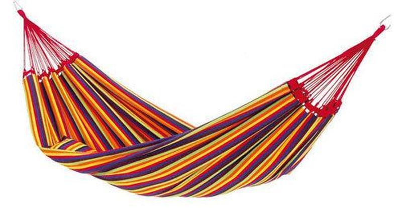 Гамак STYLEBERG 200 х 80 см Класичний тканий гамак — простий і надійний варіант розслабитися. Потрібно всього лише знайти два дерева, які недалеко стоять одна від одної, повісити гамак, зайняти горизонтальне положення та відчути абсолютну надійність і невагомість. У гамаку передбачені спеціальні кільця для підвішування гамака на дерева. Ще можна використовувати дві мотузки, які протягують у кільця й обмотують кілька разів навколо дерева та зав'язують на кілька вузлів. Характеристики: Гамак STYLEBERG 200 х 80 см - Тип: гамак; - Тип: підвісний за кільця; - Легкий і компактний; - Матеріал: бавовна та поліестер; - Розмір: 200*80 см; - Навантаження: до100 кг; - Колір: веселка. Комплектація: Гамак STYLEBERG 200 х 80 см - Гамак — 1 шт.; - Паковання: поліетилен.