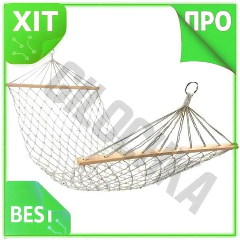 ## VE Гамак підвісний для дачі New Version 185х91 см. білий односпальний садовий гамак для відпочинку на N6W_VER Підвісний плетений гамак - це зручне і стильне рішення для відпочинку на свіжому повітрі. Він оснащений дерев'яною планкою, яка сприяє рівномірному розподілу навантаження і забезпечує комфортне розташування. Гамак ідеально підходить для дачі, саду, кемпінгу і навіть для використання в приміщенні. Міцні мотузкові кріплення з в'язаним вузлом збільшують надійність конструкції, а матеріали стійкі до зовнішніх впливів, що робить його довговічним. Основні характеристики гамака підвісного: - Розміри лежака (ДхШ): 185х91 см; - Розмір у складеному стані: 1х15х15 см; - Тип: підвісний; - Матеріал: мотузка 0.5 см. Переваги туристичного гамака: - Підходить для використання на дачі, в саду, на природі та навіть у приміщенні; - Міцні мотузкові кріплення з в'язаним вузлом підвищують надійність конструкції; - Матеріали стійкі до зовнішніх впливів, що робить гамак довговічним. На кожній стороні гамака передбачено мотузку-вішалку з в'язаним вузлом, що підвищує його міцність і надійність під час підвісного монтажу. Конструкція розрахована на рівномірний розподіл навантаження, що зменшує ризик пошкоджень і деформацій матеріалу. Використані матеріали адаптовані до умов зовнішнього середовища, що робить гамак придатним для використання як у приміщенні, так і на відкритому повітрі. Назва Од.Вим. Значення Тип гамакаОдномісний Вага1,9 Тип ложаСітка Ширина91 Довжина ложа185 КолірБілий Ширина ложа91 Довжина185 Вікова групаДля дітей та дорослих Матеріал каркасудеревина Гарантия14 днів Максимально допустиме навантаженняНі Не пропустіть вигоду! Кількість акційних товарів суворо обмежена! Попередження: на ринку працюють м'яко кажечи не сильно чесні люди, пропонуючи дешеву низькоякісну продукцію під виглядом справжнього товару!Будьте пильними. Ми гарантуємо вам придбання виключно добротного товару в Україні, який бездоганно виконує свої функції та приносить лише позитивні емоції від використання. Чому вигідно купувати саме у нас? Справжні відгуки та рекомендації від задоволених клієнтів Наш інтернет-магазин по праву гордиться великою кількістю позитивних відгуків від вдячних клієнтів. Ознайомтесь з їхніми думками та порадами прямо на цій сторінці або на нашому офіційному сайті, щоб остаточно переконатися у правильності вашого рішення. Максимальна відкритість і чесність у кожному аспекті Ми будуємо міцні відносини з покупцями на засадах порядності та відкритості, завжди готові до діалогу та пошуку компромісів. Всі ключові характеристики продукції, гарантійні зобов'язання та умови обміну детально представлені на нашому веб-сайті, що забезпечує повну довіру та взаєморозуміння. Проста та зручна процедура повернення без зайвих зусиль Ми прекрасно розуміємо, що іноді трапляється, що обраний товар з якихось причин не підійшов. Саме тому наша система повернення є максимально прозорою та клієнтоорієнтованою, щоб ви відчували себе захищено та спокійно після здійснення покупки. Обслуговування преміум-класу, підкріплене 10-річним досвідом Наші досвідчені фахівці завжди готові надати вичерпну консультацію та професійну допомогу у виборі оптимального товару. Ми цінуємо кожного покупця та докладаємо максимум зусиль, щоб процес вашої покупки був максимально комфор