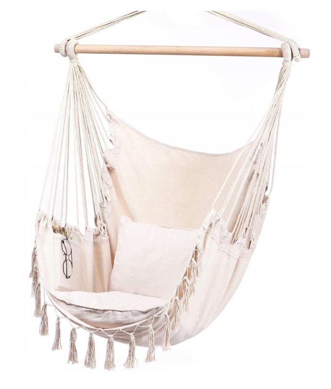 Крісло-гамак підвісний садовий funfit premium cream бразильський сидячий з подушками