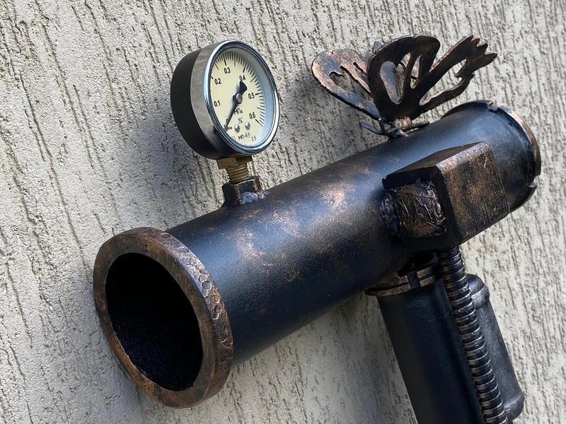 Шукаєте незвичайну поштову скриньку? Ось вона! Ця поштова скринька в стилі стімпанк - не просто місце для листів, а справжній шедевр, який прикрасить ваш будинок або подвір'я і підкреслить його унікальний стиль. Це кована скринька ручної роботи з елементами стімпанк та декоративним метеликом. Скринька не має замка, що додає їй вінтажного шарму. Розміри: - Загальна висота: 110 см - Ящик для листів: 38 см x 20 см x 17 см Колір: чорний з покриттям мідної та бронзової патиною, що створює ефект штучного старіння. Кожна скринька буде виглядати інакше, ніж на фото, адже кожен виріб виготовляється з використанням унікальних елементів стімпанку. Це чудовий подарунок на весілля, день народження, День матері та багато інших свят або просто для прикраси вашого дому!