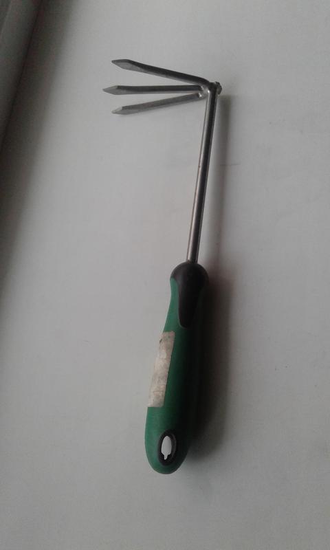 Ручний металевий розпушувач ґрунту, Культиватор міні для оброблення, розпушування ґрунту та видалення бур'янів, мусора.Ручка з м'яким нековзним покриттям. Чудовий вибір для дачі або балкона! Нюанс: Бил двосторонній інструмент із мотогою, мотузка відламалася.