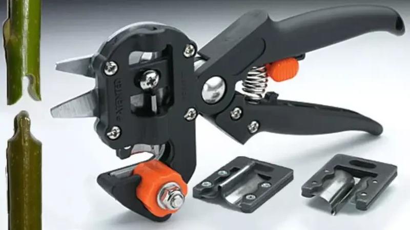 Прививочный секатор Professional Grafting Tool - инструмент, появившийся на рынке не так давно, но уже заслуженно снискавший популярность у садоводов. Не только специалисты, но и новички, теперь могут позволить себе делать прививки почти со 100% результатом. Сектор укомплектований трьома змінними лезами з U, V і Ω - подібною формою з двостороннім заточуванням. Оскільки для позитивного результату при проведенні щеплення велике значення має чистота зрізу, ножі виготовлені з високоякісної легованої сталі, леза з високовуглецевої сталі SK5, стійкі до корозії. Найвища гострота дозволяє зробити чистий, ідеально рівний зріз, не дає зминатися деревині. Завдяки ідеальної точності зрізу, який робиться за лічені секунди, прищепа і підщепа прилягають один до одного абсолютно рівно, і утворюють щільний зв'язок. Вам не доведеться купувати саджанці сумнівної якості, і вирощувати їх до отримання врожаю, за допомогою щеплення ви можете отримати плоди бажаного сорту через рік. На одне дерево можна прищеплювати безліч живців різних сортів. З допомогою щеплення секатора ви можете прищепити на нецікавий для вас кущ або дерево новий сорт, використовуючи колишню кореневу систему, і обійтися без вирубування і викорчовування пнів.