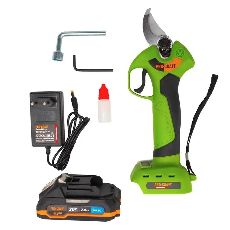Акумуляторний секатор ProCraft ES28Li — високоякісний продуктивний інструмент для догляду за садом, який застосовується для обрізання гілок дерев і чагарників завтовшки до 25 мм. Основними відмінностями моделі ProCraft ES28Li є компактні розміри, можливість вибору одного з 4 режимів роботи, для різних діаметрів різання, невелика вага та збалансованість конструкції. Джерелом живлення є 20 В (Li-Ion) акумулятор ємністю 2 А·год, завдяки чому секатор із легкістю справляється з найважчими завданнями впродовж тривалого часу без підзаряджання. А безщітковий двигун забезпечує максимальну потужність і ефективність під час експлуатації. ОСОБЕННОСТИ: - висока швидкість роботи; - 4 режими роботи; - 1 АКБ у комплекті; - пластиковий кейс у комплекті; - безщітковий двигун; - мала вага та компактні розміри; - простота у використанні; - збалансована конструкція. КОМПЛЕКТАЦИЯ: - акумуляторний секатор ProCraft ES28Li; - акумулятор (20 В, 2 А·год); - зарядний пристрій; - посібник з експлуатації; - набір ключів; - пластиковий кейс.