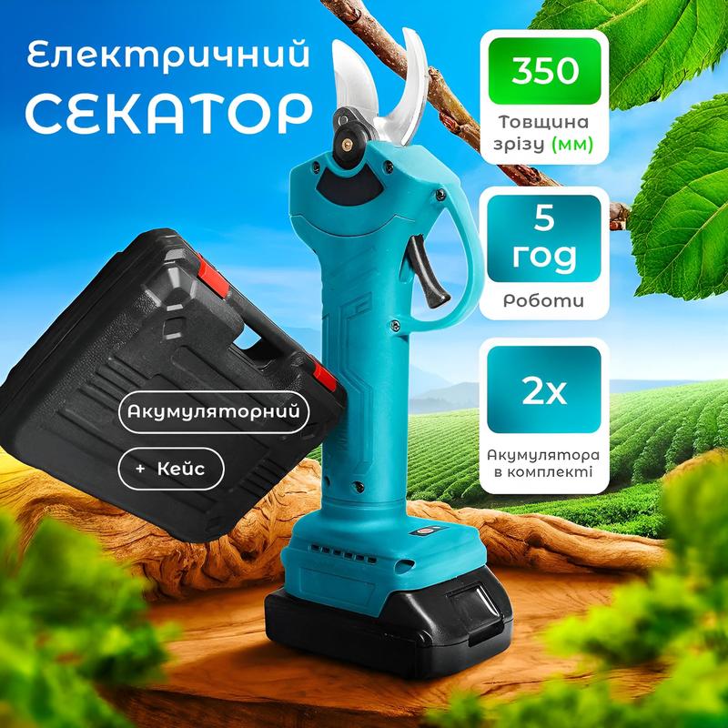 Бесщеточный аккумуляторный секатор 21 v с кейсом для обрезки деревьев и кустов беспроводно...