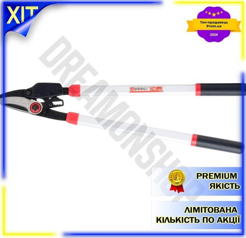Dm ножиці для обрізки специфікація 2.2 гілок intertool 740 мм із редуктором алюмінієві руч...