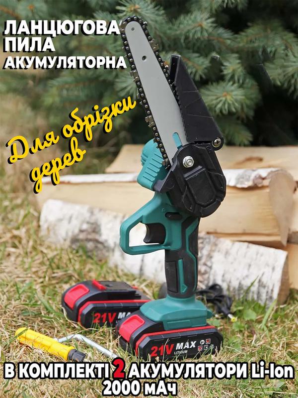 Ланцюгова пила акумуляторна для саду + 2 акумулятори 21v ручна мініепила 6" для обрізання...